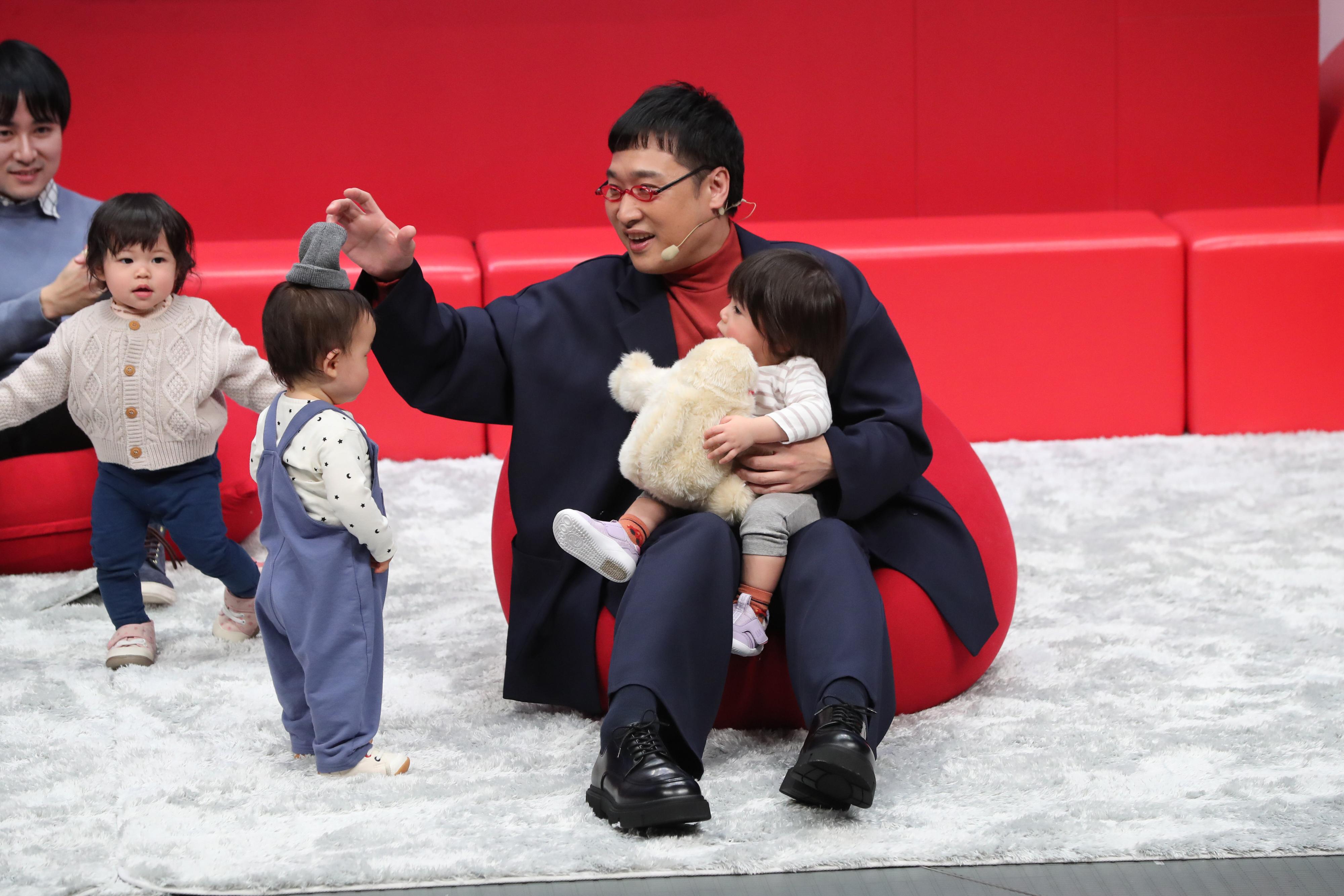 自由に動き回る赤ちゃんたちにも動じず、楽しそうにお相手する山ちゃん