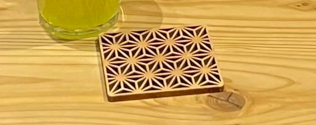 お寿司屋さんで湯呑みとともに出される和柄コースター。雰囲気にとてもよく似合っていますね。