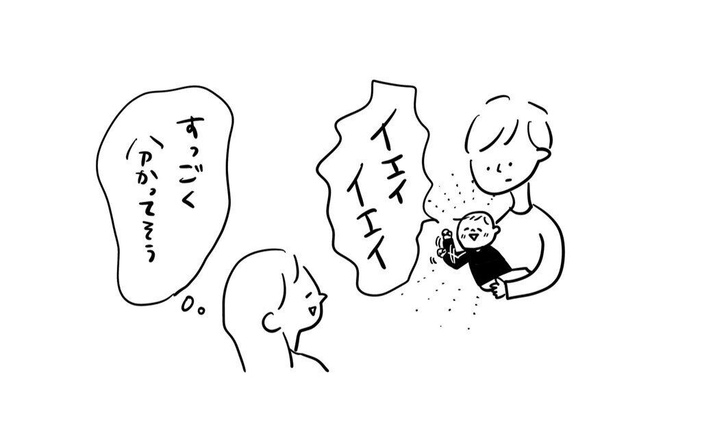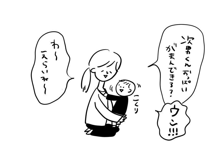 次男くんはうれしそうに「イエイイエイ」とにっこにこ!さっきとは打って変わって「すっごくわかってそう」な様子がほほえましいですね。