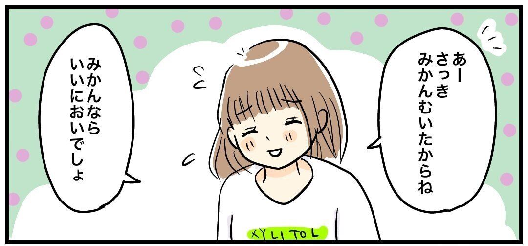少し前に、娘さんにみかんの皮をむいてあげていたので、手に香りがついてしまったようです。