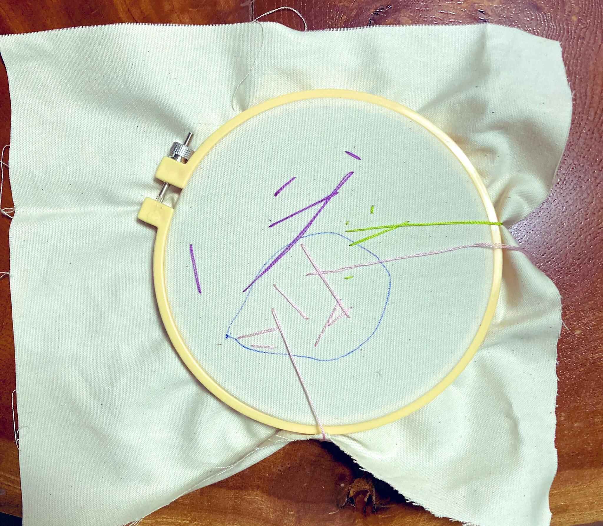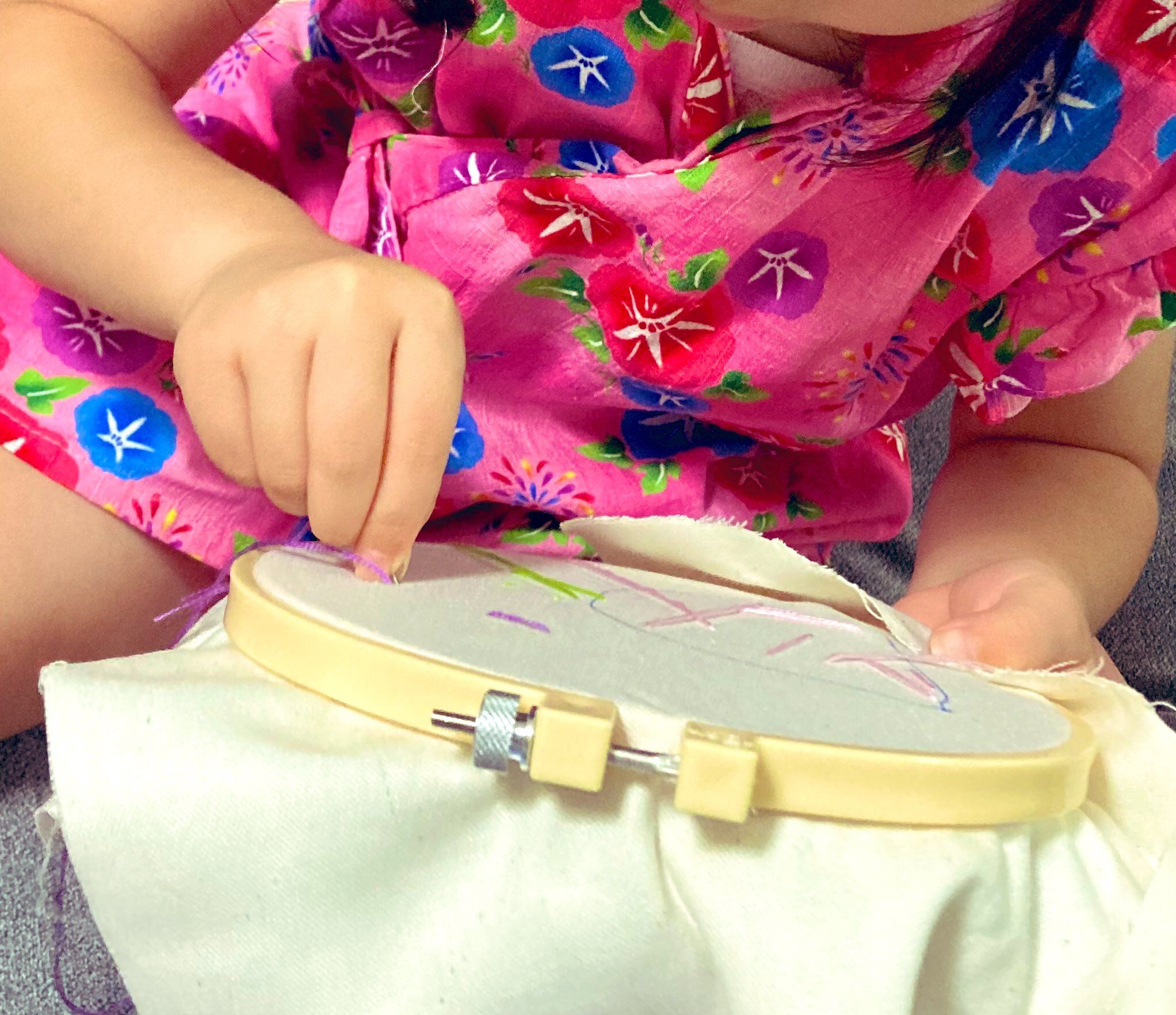 「針で指を刺さないか、針を落とさないか……と内心ハラハラでしたが、小さな手で大きな枠を持って、大胆に縫っていく姿を見てとても癒されました」