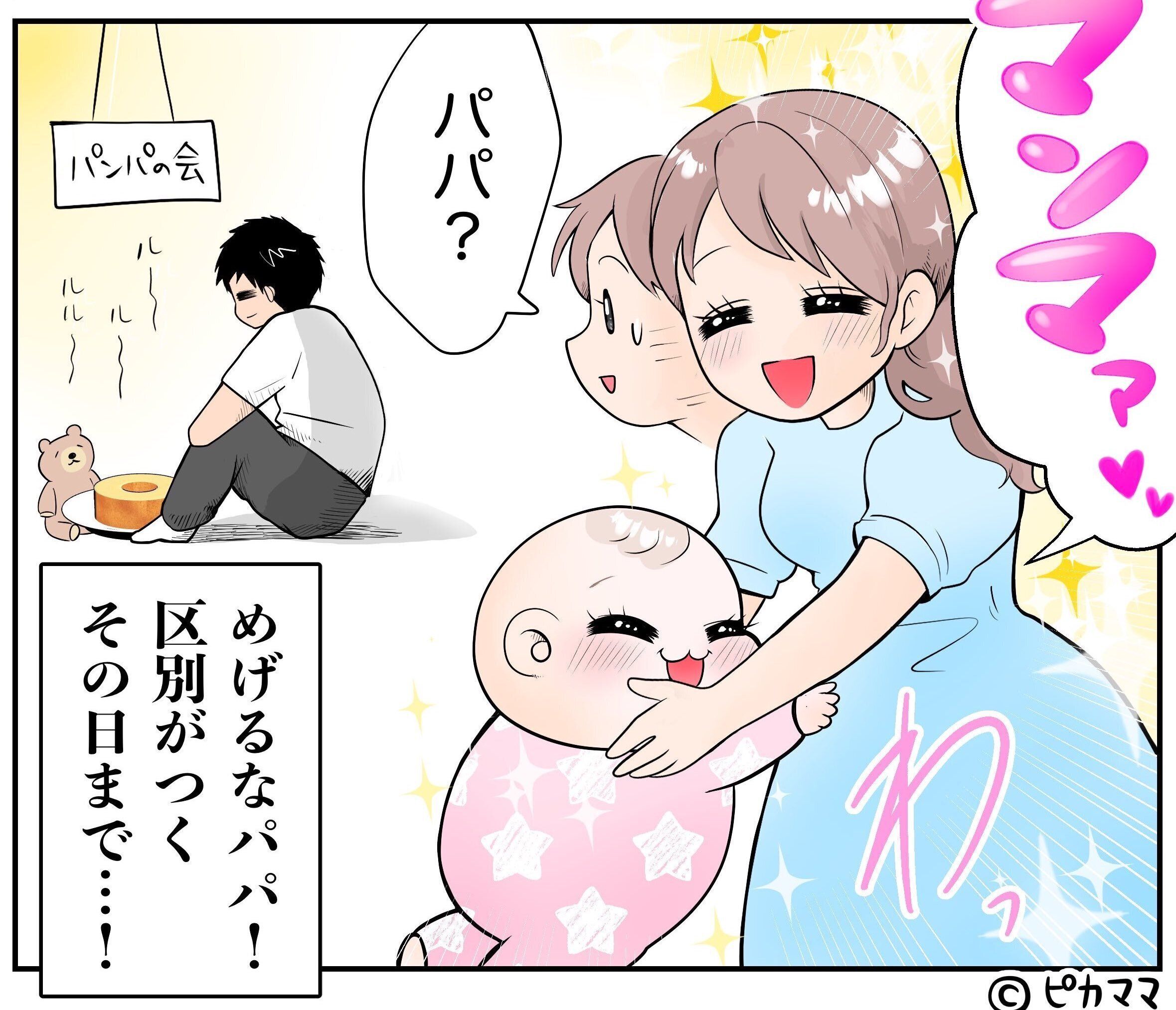 そのかたわらでしょんぼりするパパに「めげるなパパ!区別がつくその日まで……!」とママはエールを送るのでした。