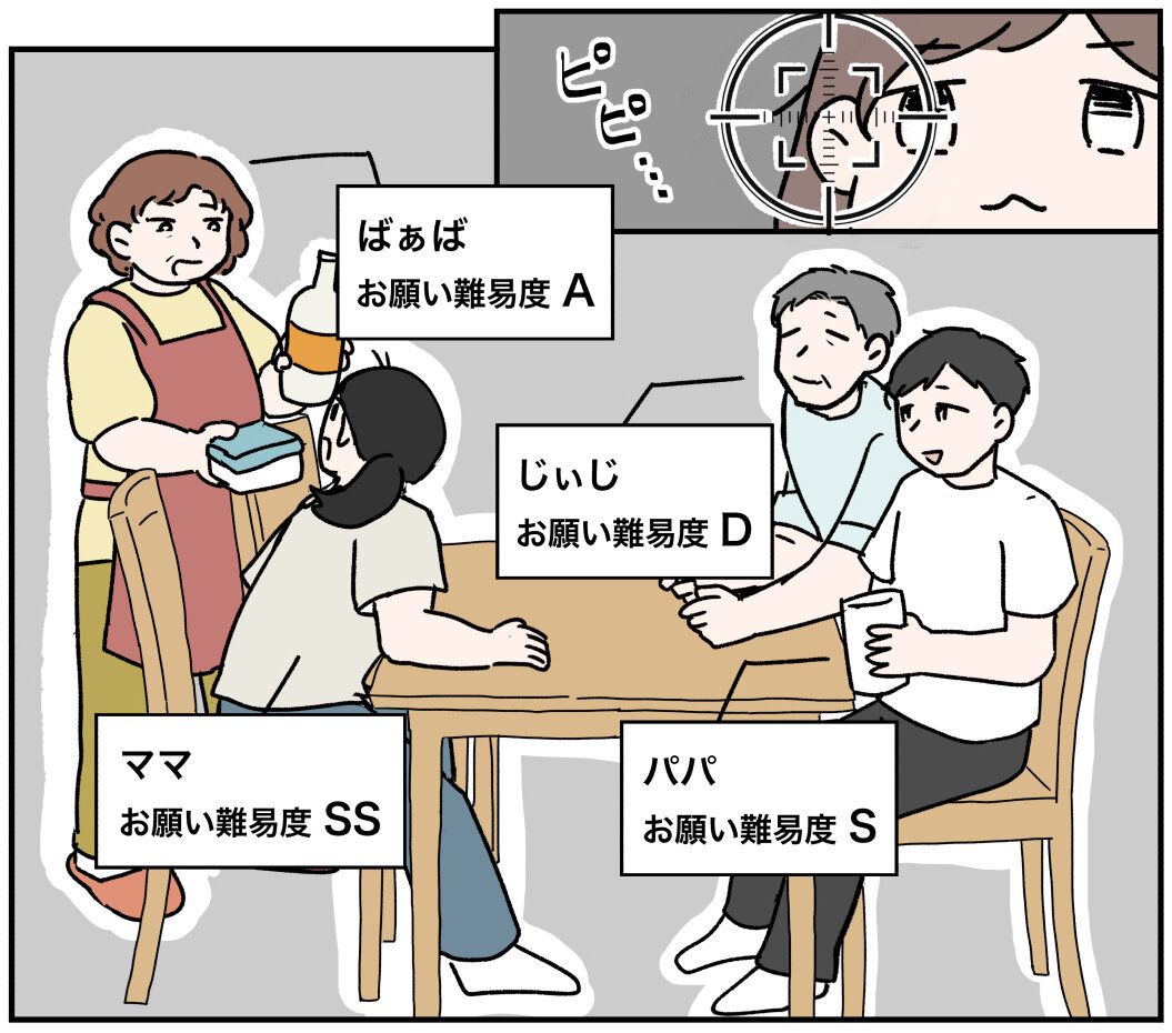 「ピピピピ」と狙いを定めたのは、お願い難易度Dのじぃじ。