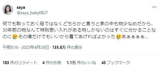 「特別思い入れがあるのは、すぐに分かることなのに。その場だけでもいいから着てあげればよかった」