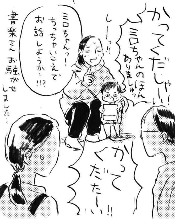 「ミロちゃんっ!ちっちゃいこえでお話しようか!?」と慌てるテラスさんでしたが、一生懸命ママの本を宣伝するミロちゃんはとってもかわいらしいですね!