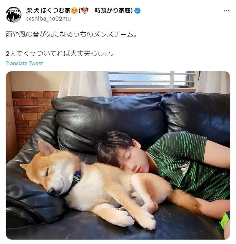 雨風の音が気になるメンズチームのふたりが、寄り添い合ってスヤスヤ眠っています!かわいすぎる様子に反響が集まりました。