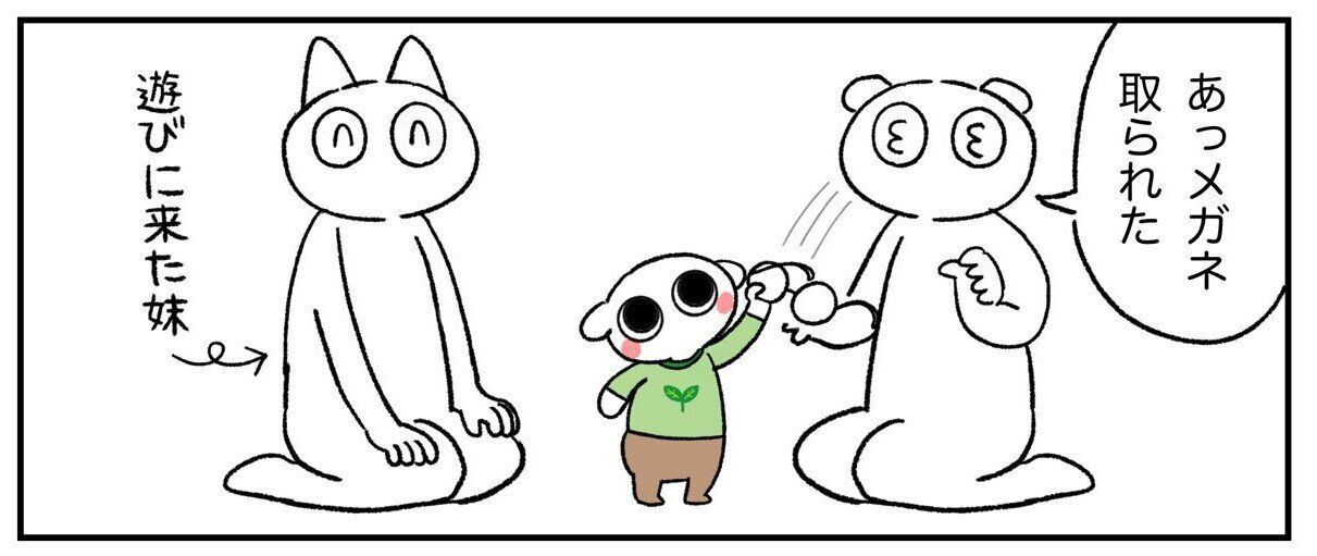 「あっ、メガネ取られた」と言うたんぼさんの前には、メガネを持つ息子さんの姿があります。