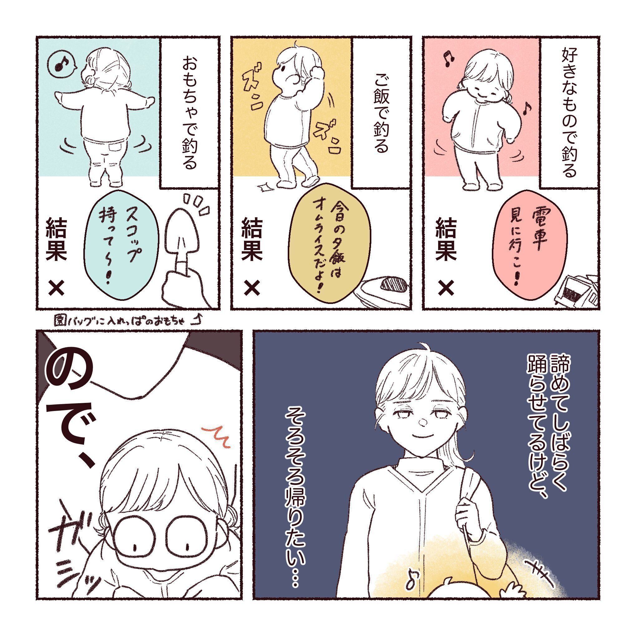 「スコップ持って~」と持っていたおもちゃで釣ってもダメ。