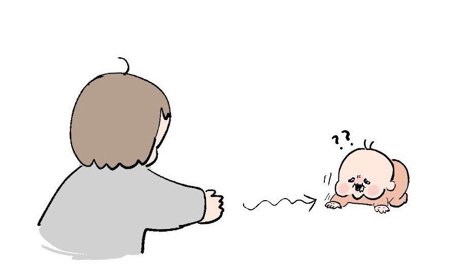 前方のママに近付きたいのに、意思に反して体は後ろへ下がっていってしまいます。イラストのネネちゃんも「なぜ??」と言わんばかりの表情ですね。