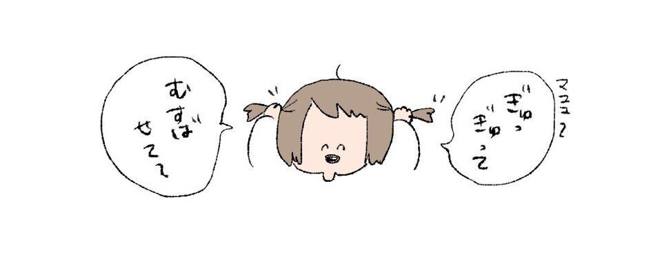 ある日、娘さんに「ぎゅっぎゅって、むすばせて~」と、髪の毛を結ぶジェスチャーを見せながら声をかけました。