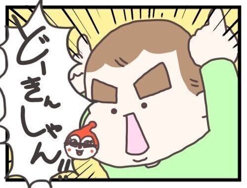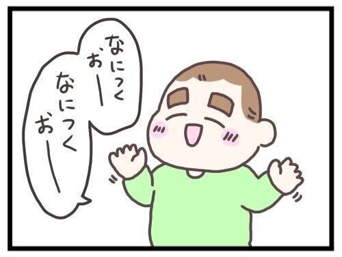 「ぐるぐるぱーで、ぐるぐるぱーで」と歌っているのは、いかすみこさんの息子さんのげそたろくん(2歳)です。じゃんけんのグーのように握っている両手がかわいいですね。
