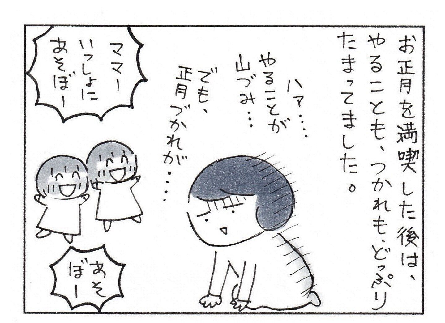 なりたりえさんは、7歳と6歳の娘さんのママです。疲れが溜まってしまったりえさんが、娘さんたちに「遊ぼう」と声をかけられます。そのとき、りえさんが取った行動は……?