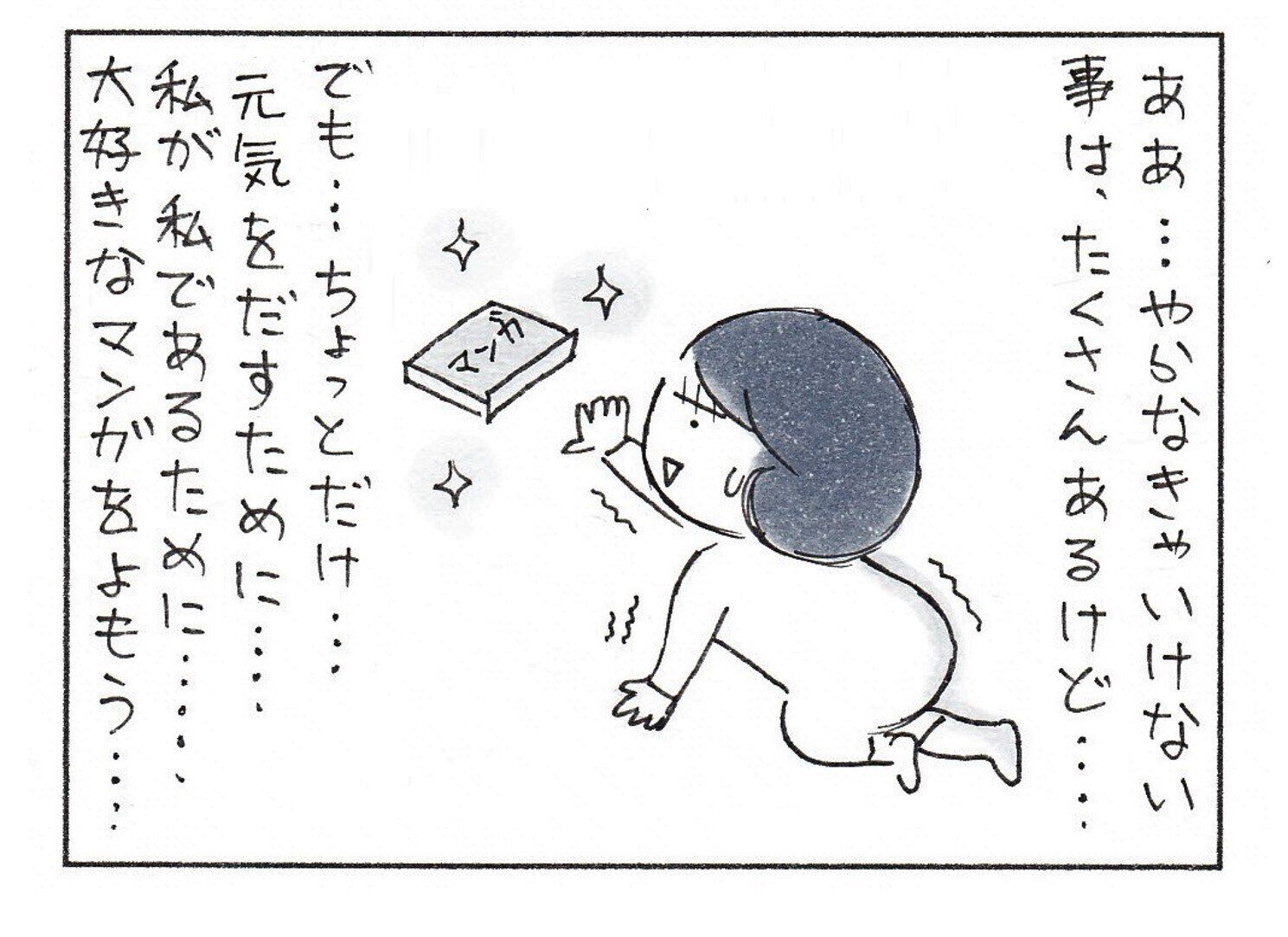 やらなきゃいけないことはたくさんあるけど、それを頑張るために「大好きなマンガを読もう」と決めるりえさん。