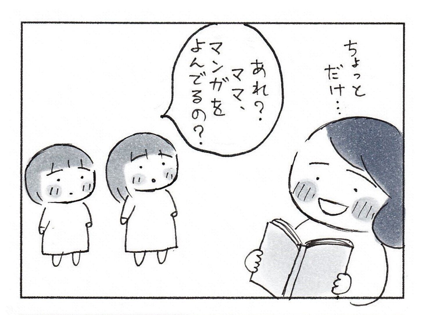 マンガを読み始めたりえさんを見た娘さんたちは、「マンガを読んでいるの?」と問いかけます。
