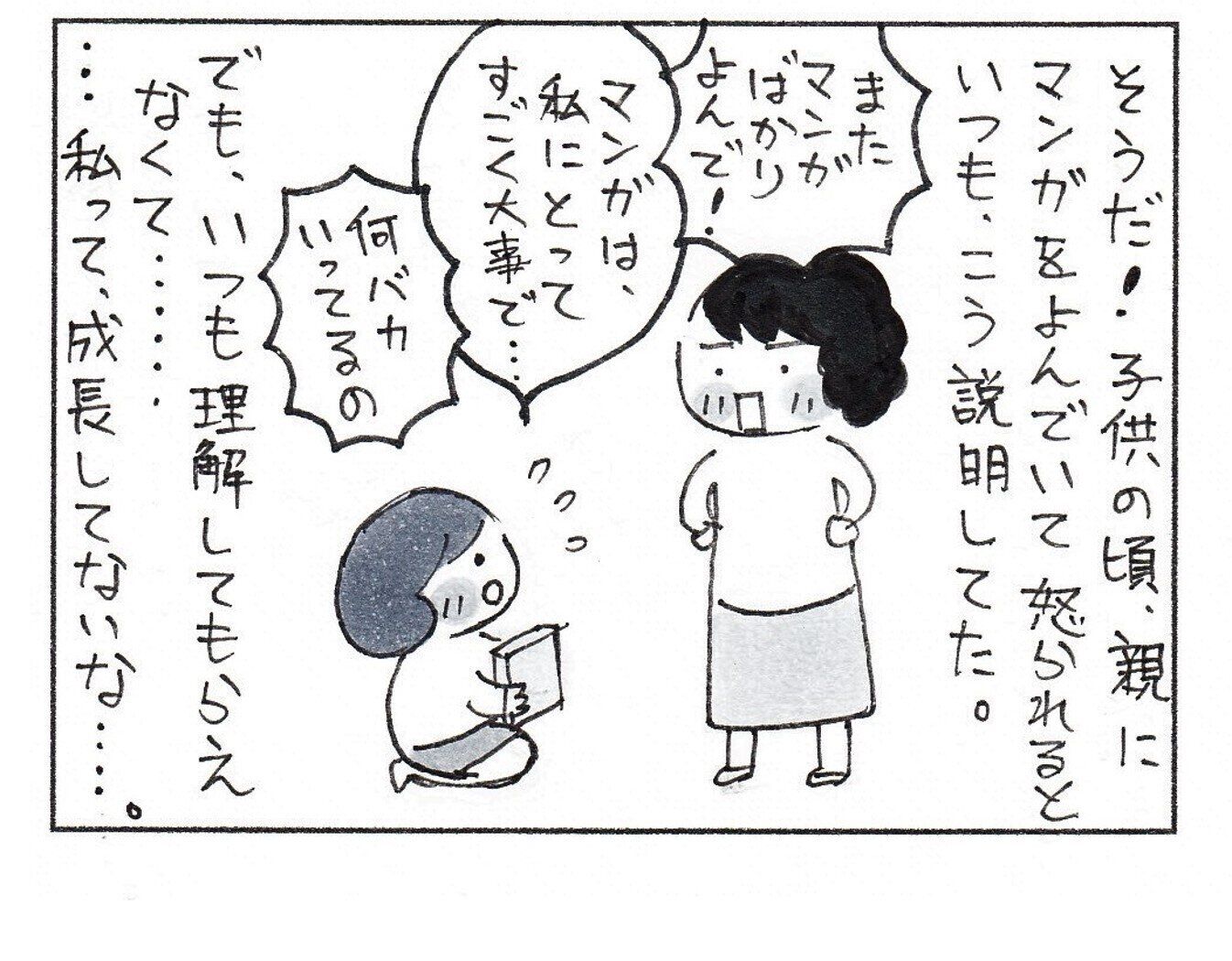 マンガを読むのはママが元気であるために必要なこと、と説明をします。そこで思い出すのは、りえさんが小さい頃の思い出でした。