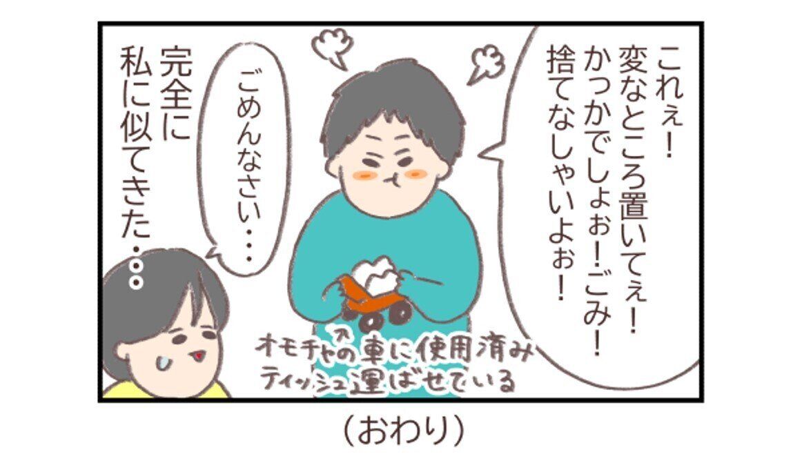 しかし、それ以外の場面でもぽよさんそっくりな言い方で注意をするように!これにはぽよさんも「ごめんなさい」と肩なしです。子どもは親の姿をよく見ていますよね…。
