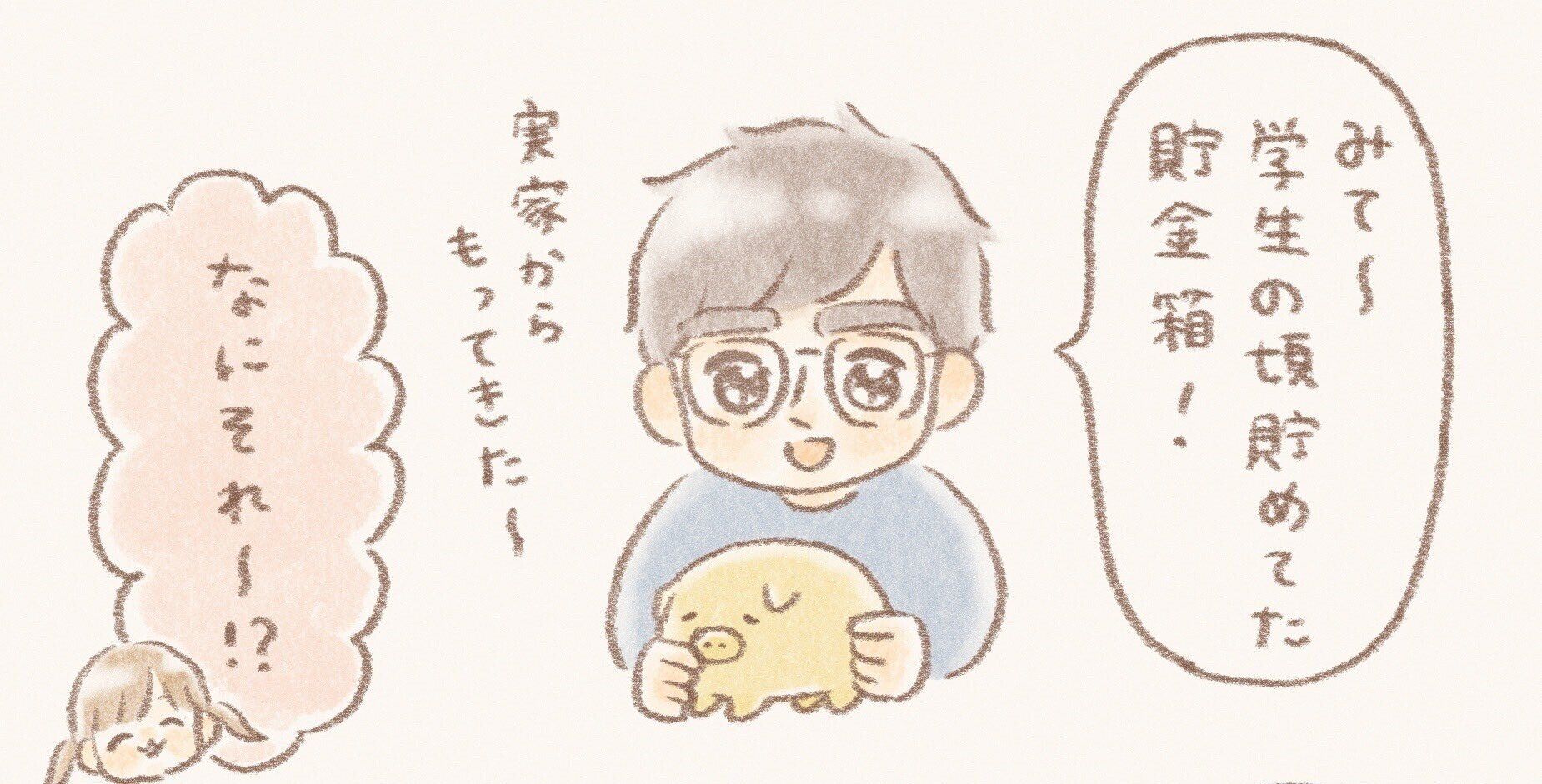 パパが実家から持ってきたのは、学生の頃にお金を貯めていたという貯金箱。
