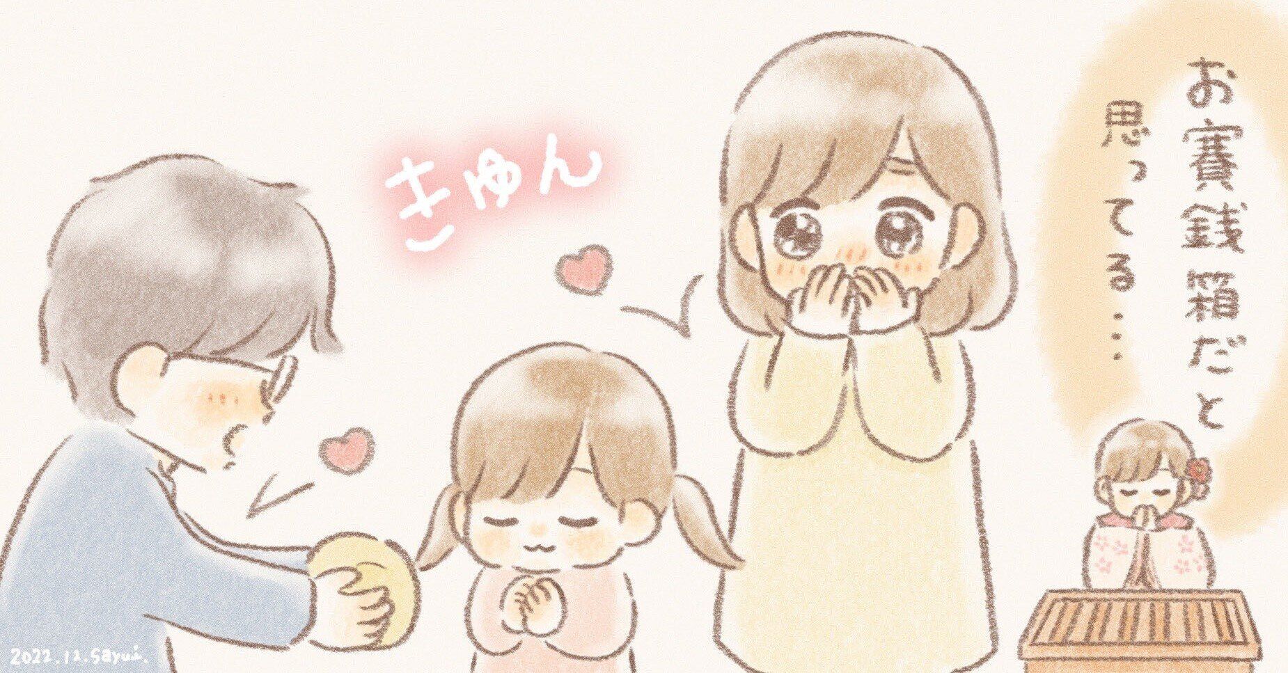 かしわ手を打ってお祈りをして、七五三のときのウキウキした気持ちも一緒に思い出されたのではないでしょうか。かわいいお願いごとが叶って、うにちゃんがパパとママとぬいぐるみたちと楽しく過ごせるといいですね!