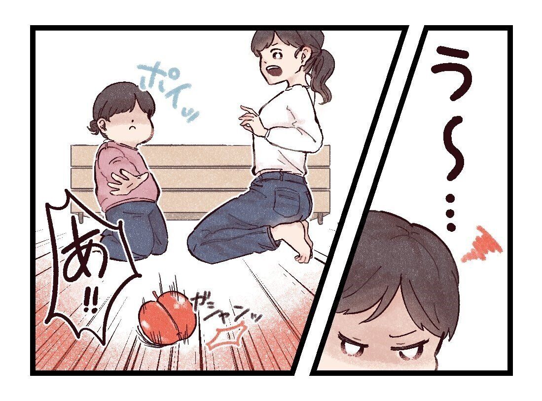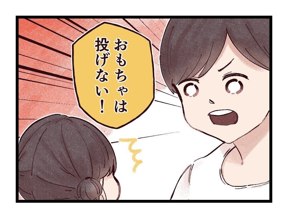 ママが「もうおもちゃはおしまい!」と伝えたところ、イライラしておもちゃを投げてしまいました。