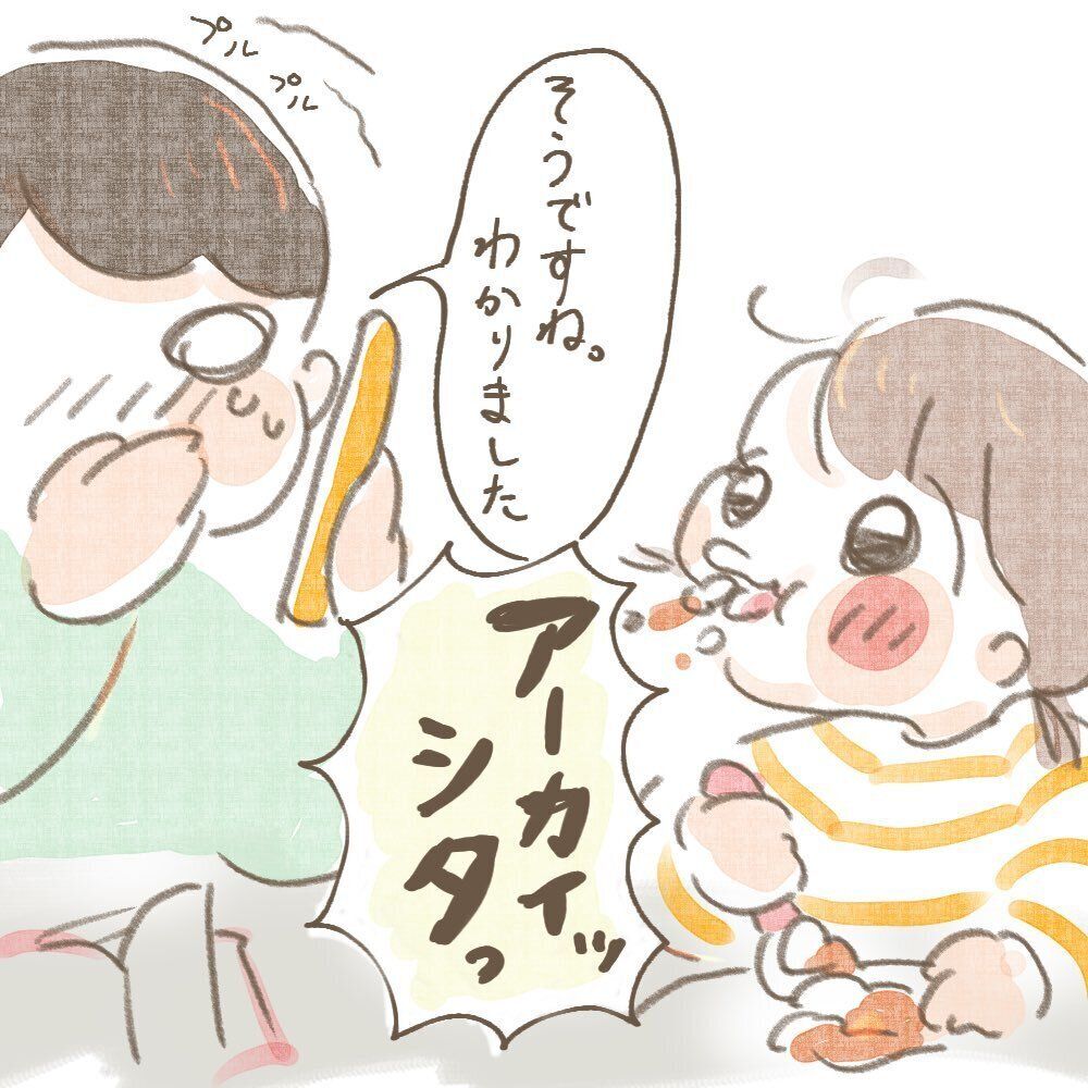 いぬのひとさん(@mohumohuwanchan)が「笑ってはいけない電話タイムだった」とコメントをして育児漫画をツイートしました。電話中のママの返事を完全にコピーする2歳の娘さん。その様子が「かわいすぎる」とコメント欄が賑わいました。