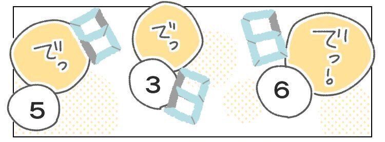 「でっ!」「6」「でっ!」「3」「でっ!」「5」と、パパとのやりとりが続きます。