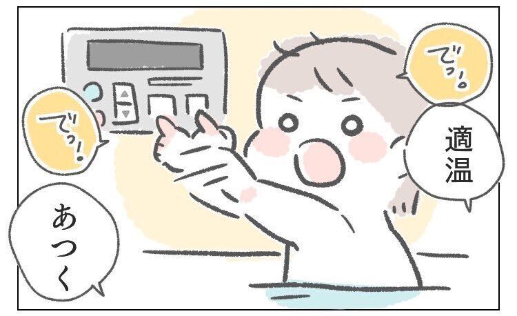 ピピピピ…と音が鳴りひびき、バスタオルを持ったママが「はーい」と駆けつけてきました。