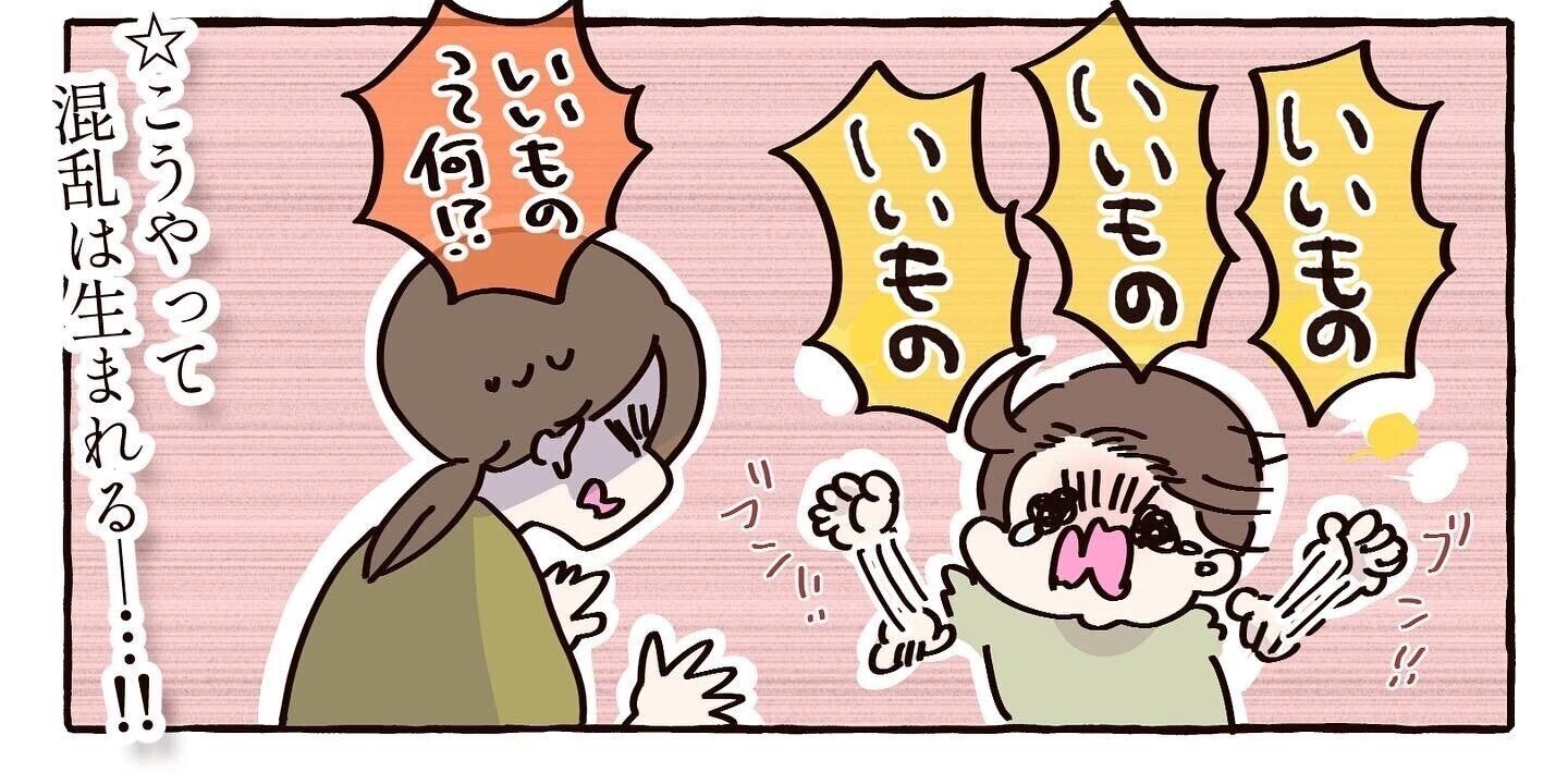 「笑っていただけて嬉しいです!すぐに答えがわからず不明だったのですが、2週間後くらいにスーパーに行ったときに、子どもが『いいもの!』と指を差して教えてくれて発覚しました」
