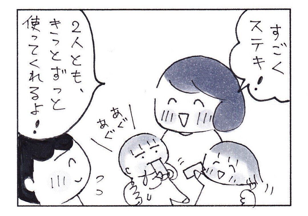 帰宅したパパは2人分の「印鑑ケース」も買ってきたとりえさんに報告をします。