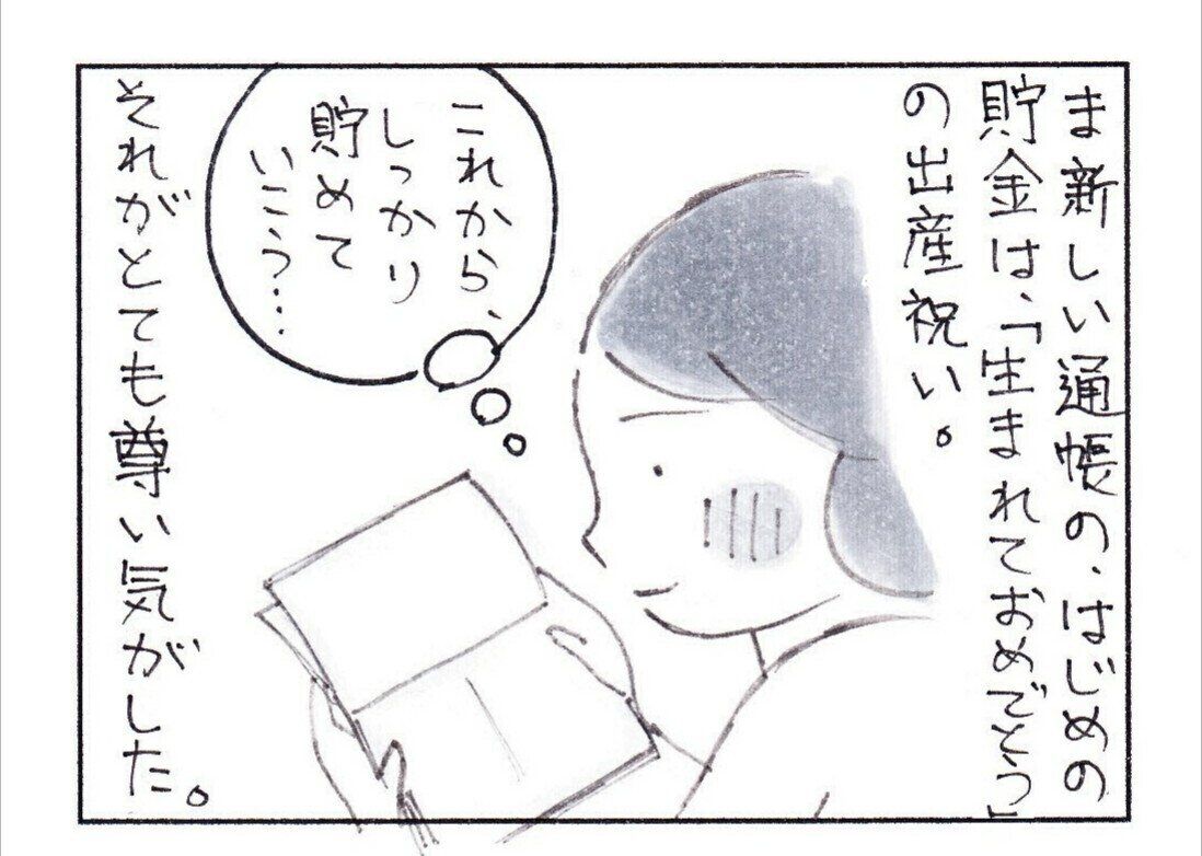 りえさんは通帳に印刷された数字から、いろいろな人の娘さんたちの誕生を喜ぶ気持ちをとても尊く感じて「これからしっかり貯めていこう……」とあらためて決意をするのでした。