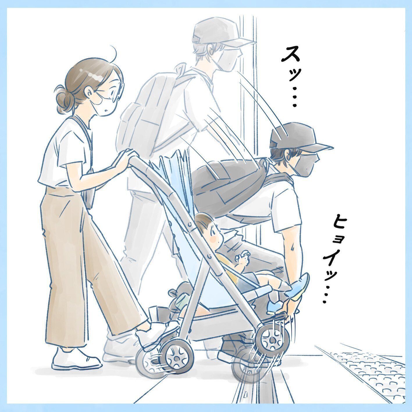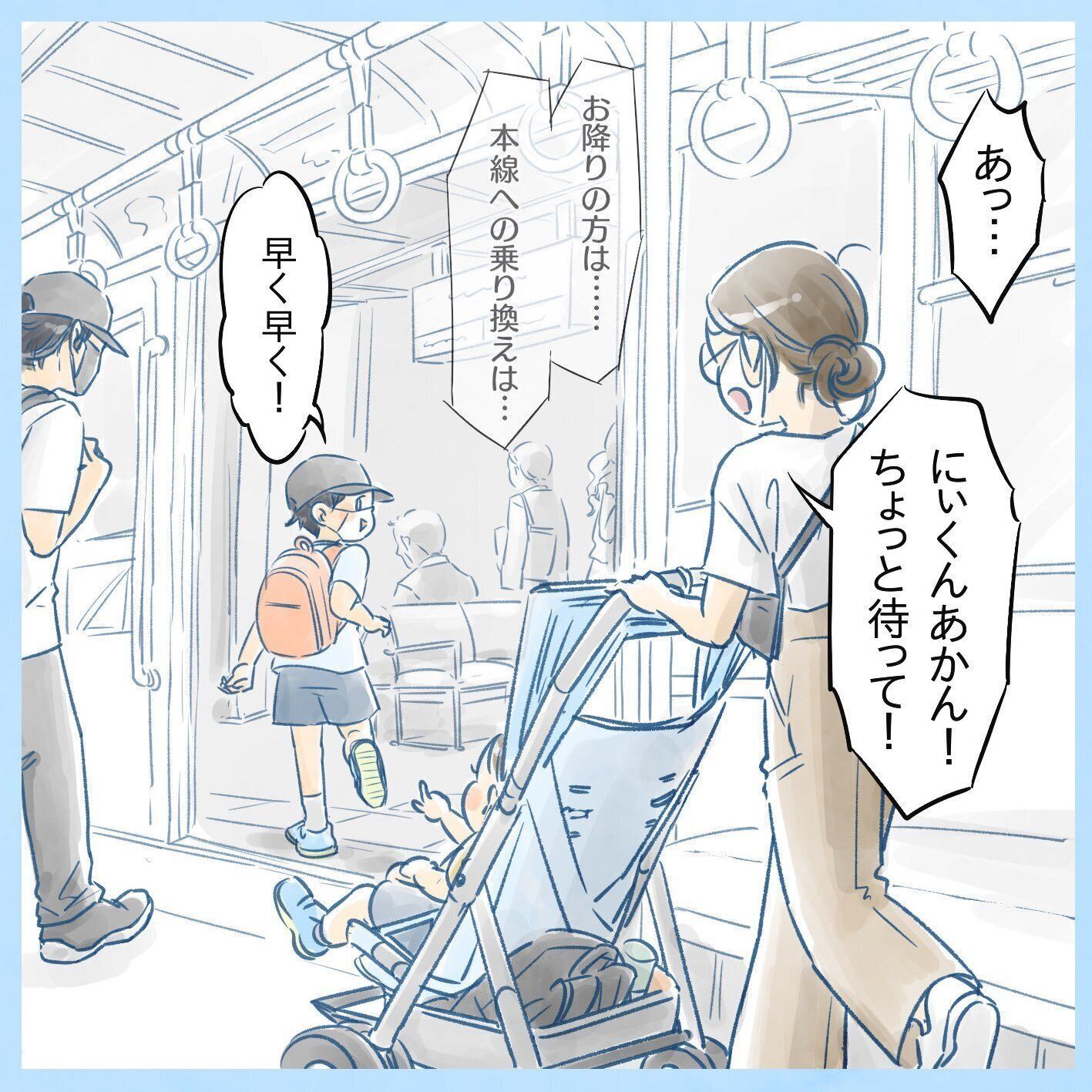 電車でのお出掛け中、お兄ちゃんがひとりで走って降りてしまいます!ベビーカーを押す星田つまみさんは焦りながらも追いかけると……、