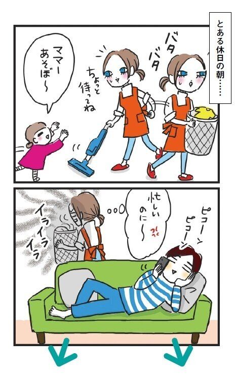 スマホを片手に”見てる”だけ。怒る妻に対して夫は「言われたとおりにしたのに」と疑問に。夫は悪気なく”見てて”をそのまま解釈しがち。