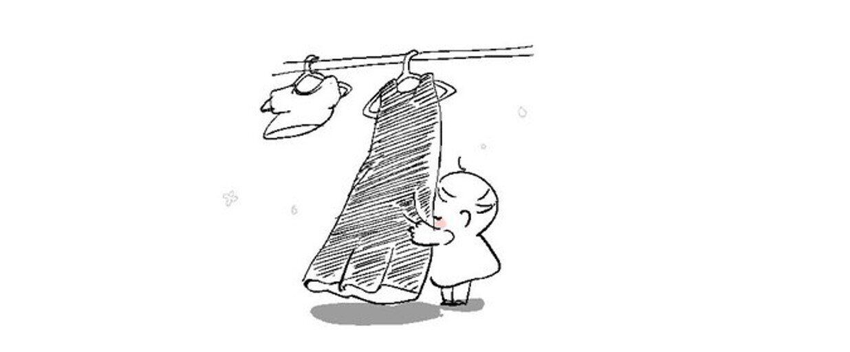 洗濯物にぎゅっとするマユユちゃん。このあと、ママから娘さんになにか声掛けなどされましたか?