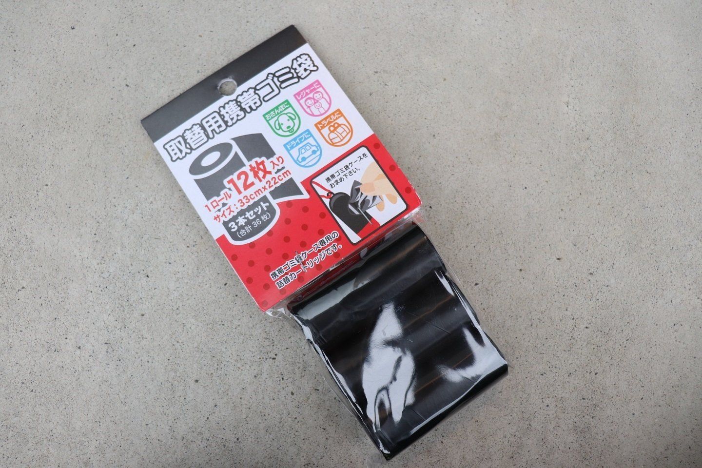 ゴミ袋がなくなってしまっても、詰め替え用のロールが販売されています!詰め替え用は12枚入りのロールが3セット。使い捨てのケースではなく、中身がなくなったら買い足せるのはうれしいですね!