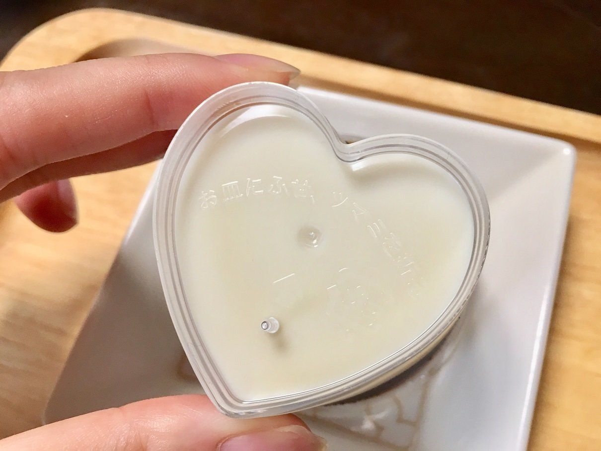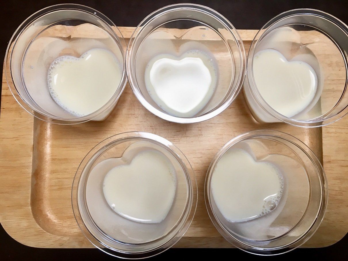 数時間、冷蔵庫で冷やせばできあがり!このまま出してもいいですが、お子さんは「プチッ!」がやりたいはず。お皿を用意して、ツマミを折れば白いハートのゼリーがプチッと完成です。