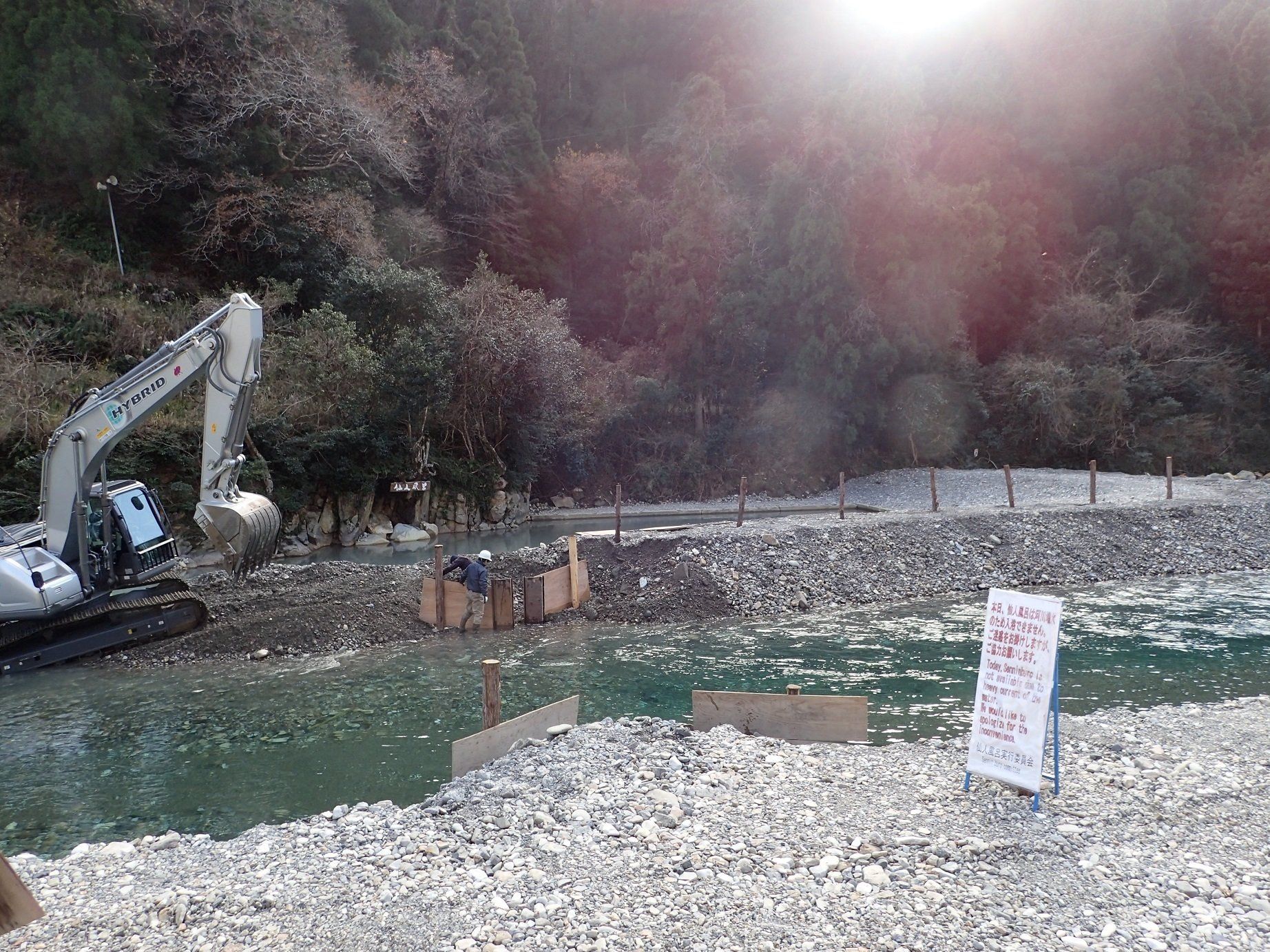 自然環境による変化が大きい場所では、天候により入れなくなる温泉もあります。写真は、数日前の大雨による増水で、川の温泉が閉鎖されたときのもの。天候による閉鎖以外にも、冬季閉鎖など期間限定の温泉もありますので、行く前には温泉の状況を確認しましょう。