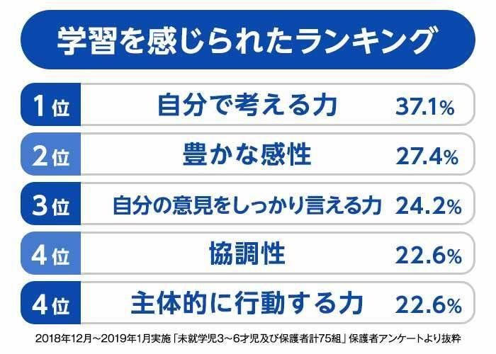 下のランキングは、『ポケットモンスター Let’s Go! ピカチュウ・Let’s Go! イーブイ』を、株式会社ポケモンが3~6才の未就学児に遊んでもらった前後の変化について、東京大学の福本理恵先生監修のもと行った調査の保護者アンケートより、「ゲームで遊ぶことを通して、利用後変化が見られた点」をまとめた結果です。