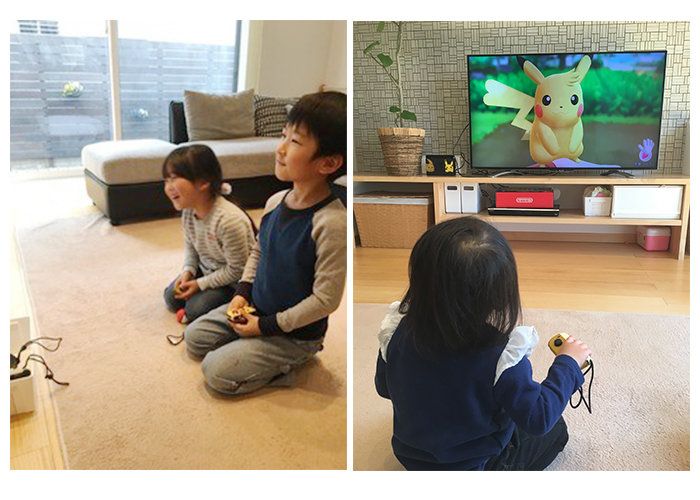 ちなみに、2才の娘さんはどうしているかというと、「二女は隣で見入っていましたがお姉ちゃんの楽しそうな様子に『私もやりたい!』。いや、さすがに難しいよ!?と思いましたが、そこは小さな子にも遊べる工夫があるポケモンのゲーム。コントローラーでピカチュウをなでなですると、ピカチュウがくすぐったそうにしたり、喜んだりしてくれるので、二女も『私もゲームをしてる! お姉ちゃんと一緒!』とうれしそう」