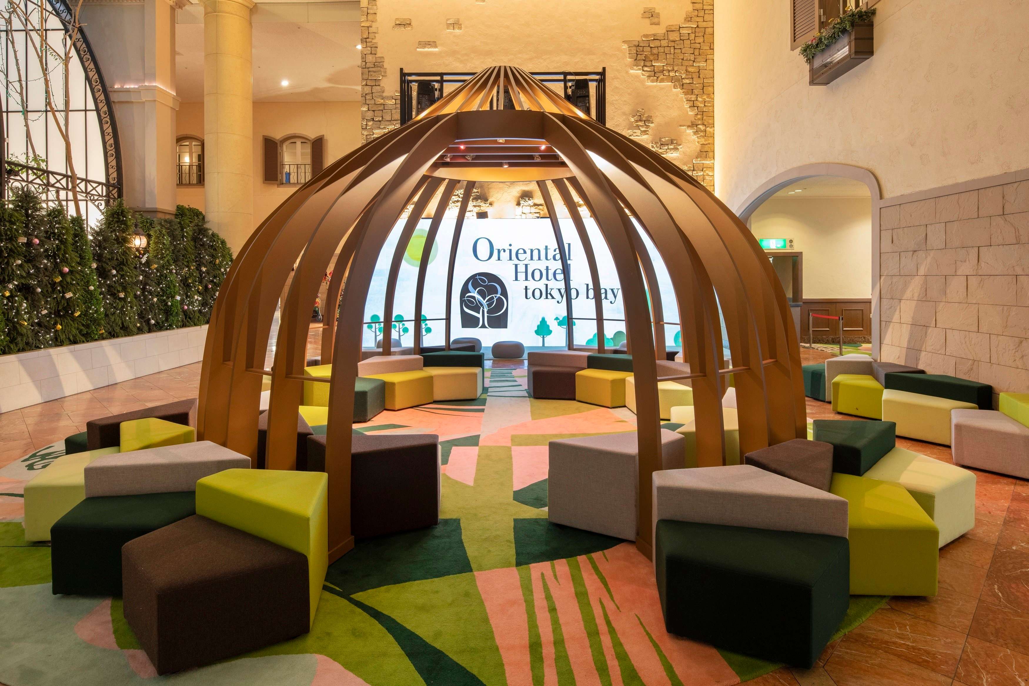 間接照明の明かりで、寛ぎと落ち着きが演出されたロビー空間を、”遊び心あふれる森”に見立てた「森のガゼボ」(東屋)も登場。高さ約3 メートルの優美なシェイプで、ゆったり過ごすことができます。