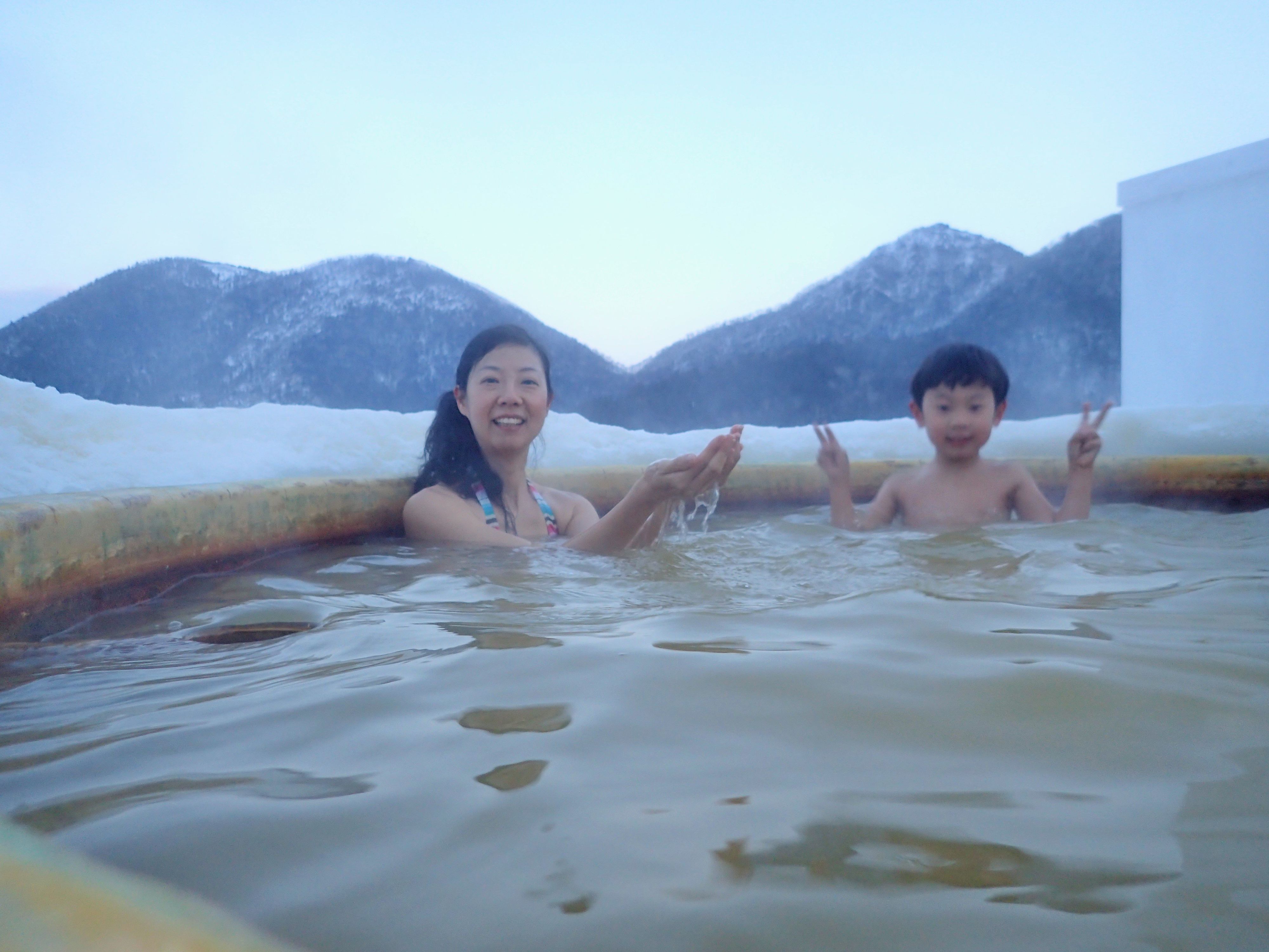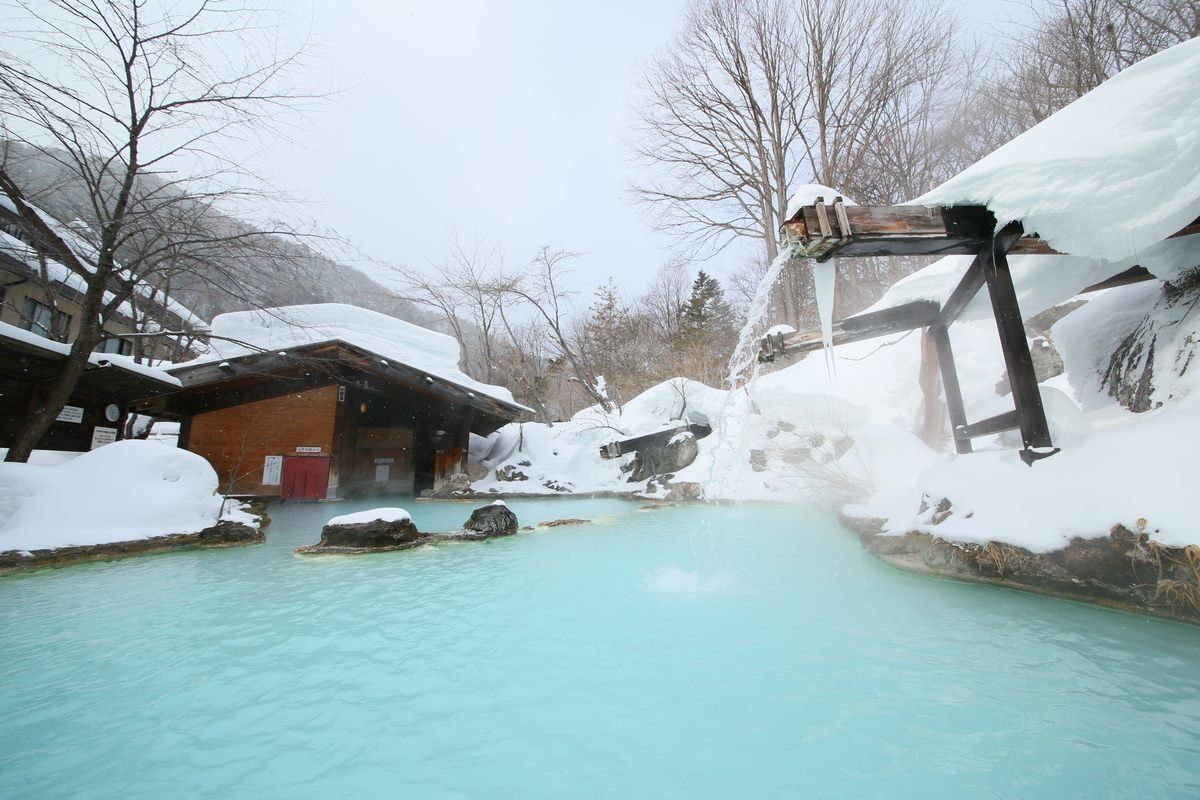 男女あわせて16の湯船があり、それぞれ温度や湯の色が異なります。冬の露天風呂は雪見どころか、雪まみれ状態。雪だるまをつくりながら温泉に浸かるなんていう贅沢な温泉体験が可能です。