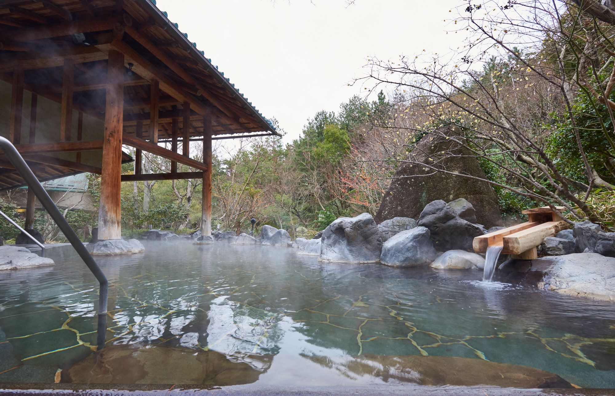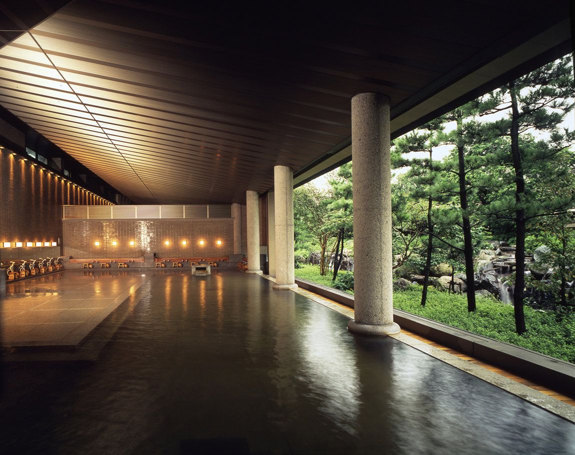 ハダカで入るゾーンは、江戸情緒を再現した大露天風呂や、室内の温泉大浴場を備えています。いわき湯本温泉の泉質は、硫黄泉、塩化物泉、硫酸塩泉の3つの泉質を持ち、よく温まる温泉です。プールで遊んだあと、やっぱり熱いお風呂で締めくくりたい、という人にもぴったりです。