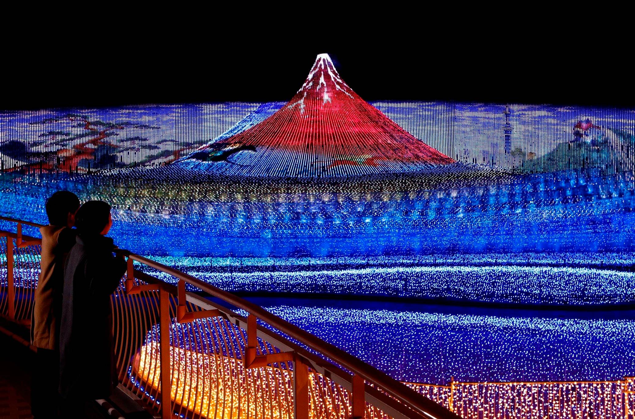 少し離れた場所にある「なばなの里」は、季節ごとに様々な花や植物が園内を彩る、花のテーマパーク。冬の期間は、国内最大級のイルミネーションが人気です。