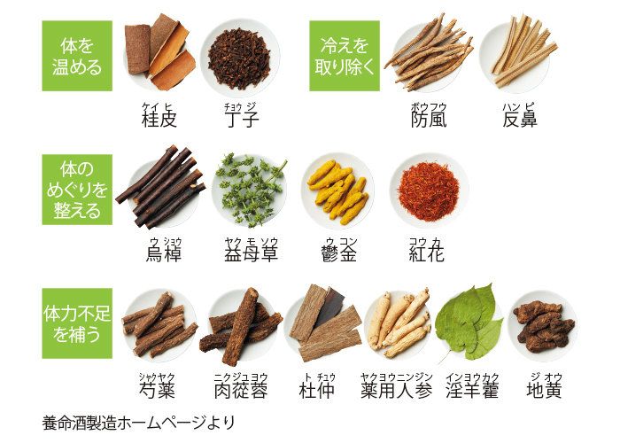 さらに、生薬で体の働きを助け、内側から温める方法も。「薬用養命酒」は、14種類の生薬を配合。「体を温める」「冷えなどを取り除く」「体のめぐりを整える」「体力の不足を補う」といった生薬の相乗作用により、健やかな体へと導きます。