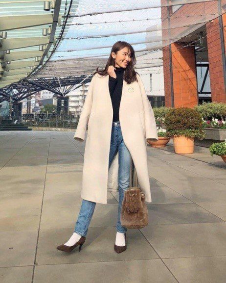 きれいめのアウターやジャケットを羽織って、上品な小物とパンプスやアクセサリーでまとめれば、清潔感も感じられ、デニムコーデでも悪目立ちはなし!