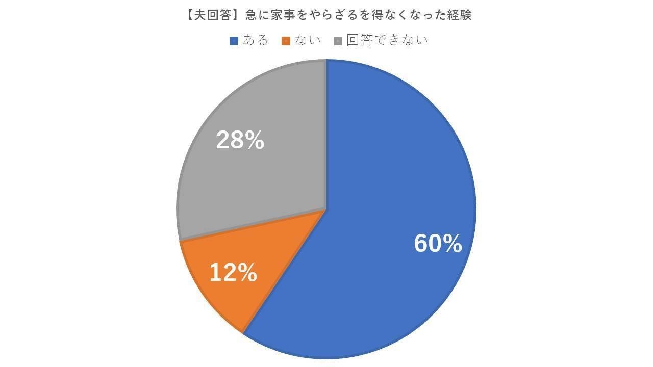 約6割の夫が妻の代わりに急きょ家事を担当したことがある
