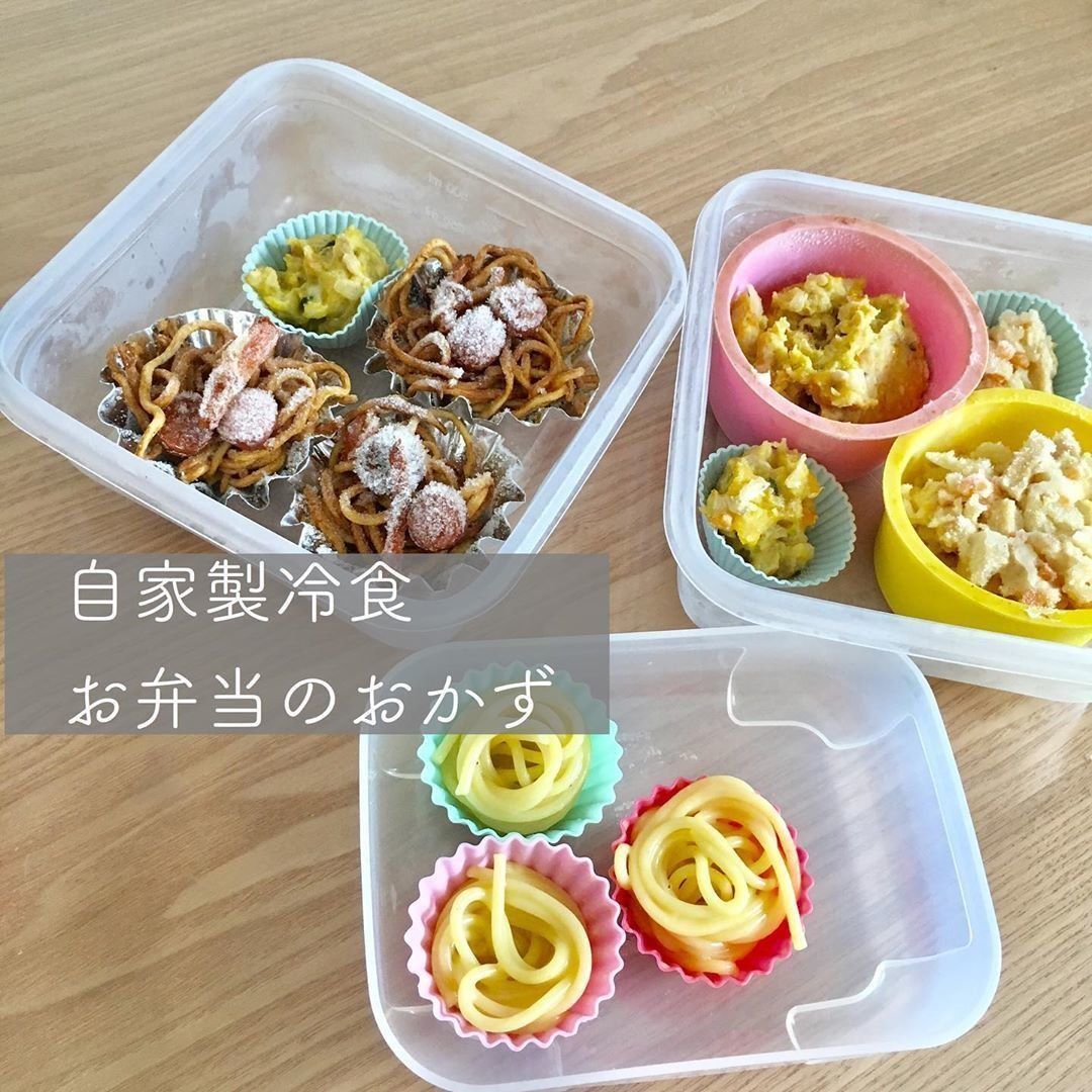 お弁当に入れるおかずは、自家製の冷食を活用しています。焼きそばやパスタはシリコンカップに入れて、冷凍保存。グラタンはチーズをかける前の状態でシリコンカップに入れて冷凍します。ほかにも、ひじきや豆の副菜などの常備菜系も保存しているのだそう。
