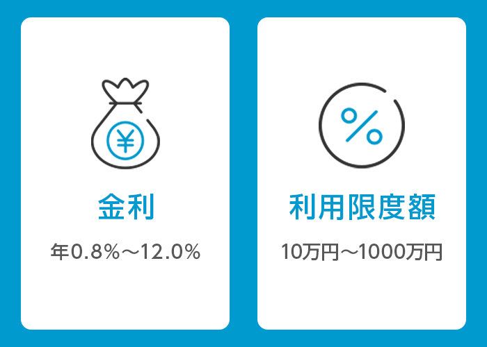 気になる金利は年0.8%~12.0%※、利用限度額は最大1000万円。