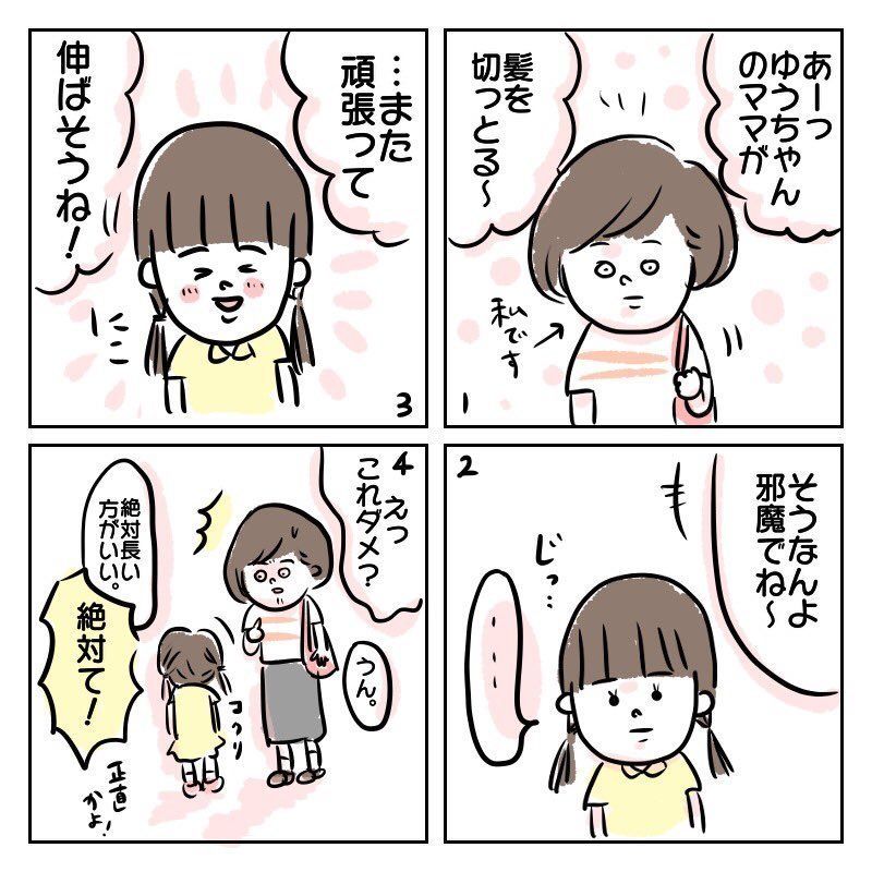 子どもは無邪気で本当にかわいい!しかし時として、無邪気な発言がナイフのようにグサッとささることが…。4コマ育児漫画が人気のこいしさん(@4comapic)は、髪をきれいに整えた後に、子どもから衝撃の発言をされます…。