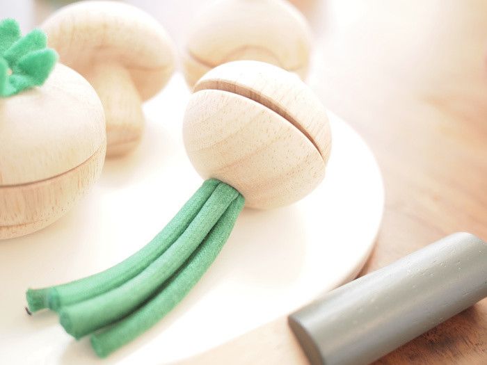 子供はおままごとが大好きですが、おままごとグッズを集めていくと色が散乱してなんだかごちゃごちゃな子供部屋になってしまうことも…。無印良品の木のおままごとセットは色味を抑えて、子どもの想像力を掻き立てるような粋な作りになっています。包丁を通すとストンと切れる小気味の良さも魅力。