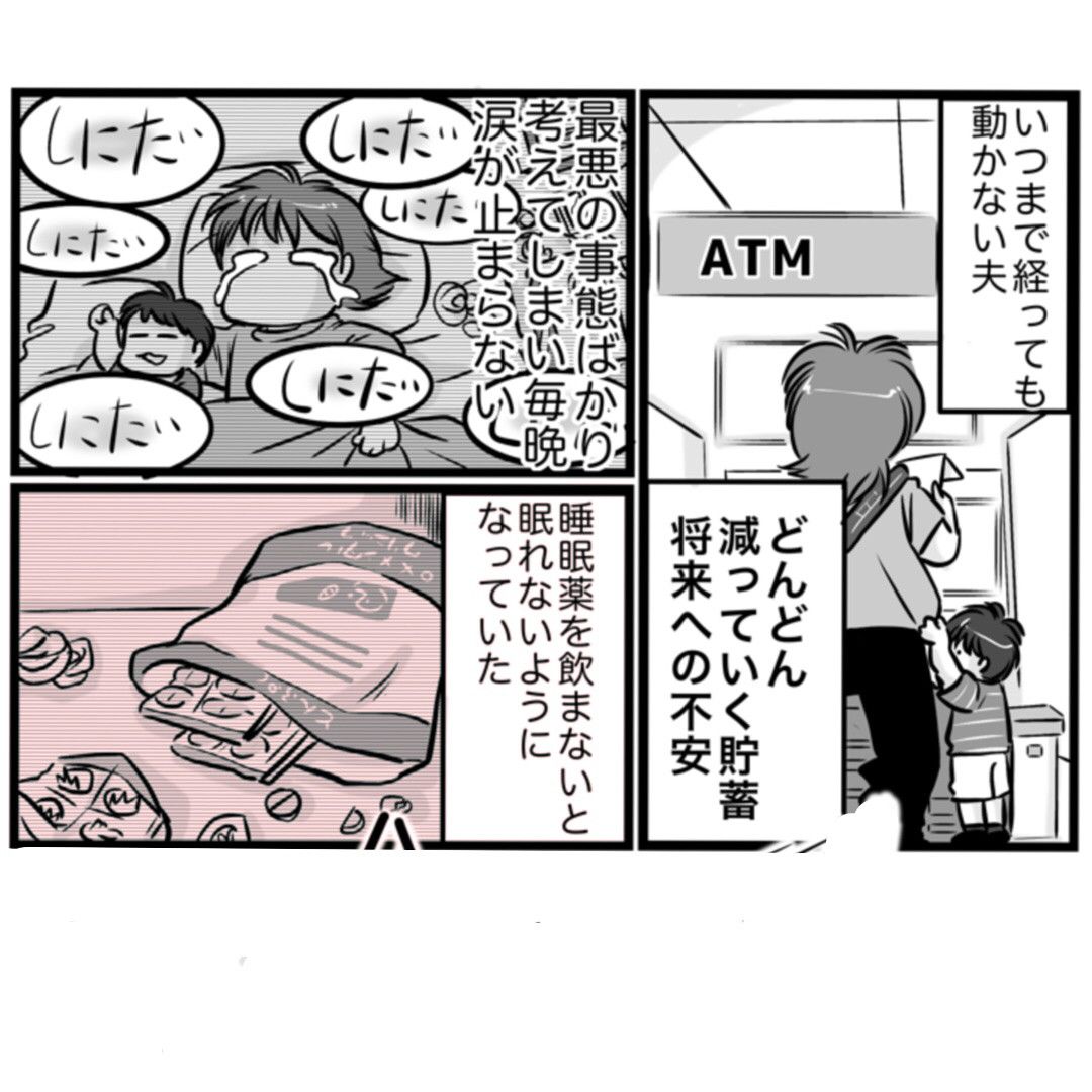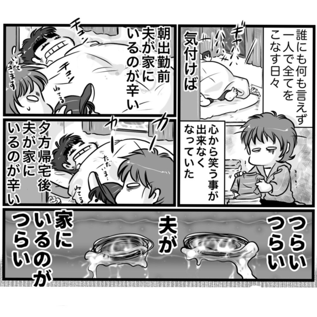 仕事からくたくたに疲れて帰っても、夫は寝ているだけ。妻のメンタルは徐々に壊れ始め、心から笑うことができなくなりました。家事もせずゲーム三昧で動かない夫、減り続ける貯金。眠れぬ毎日が続きます。夫が家にいることがつらい、つらい、つらい…。