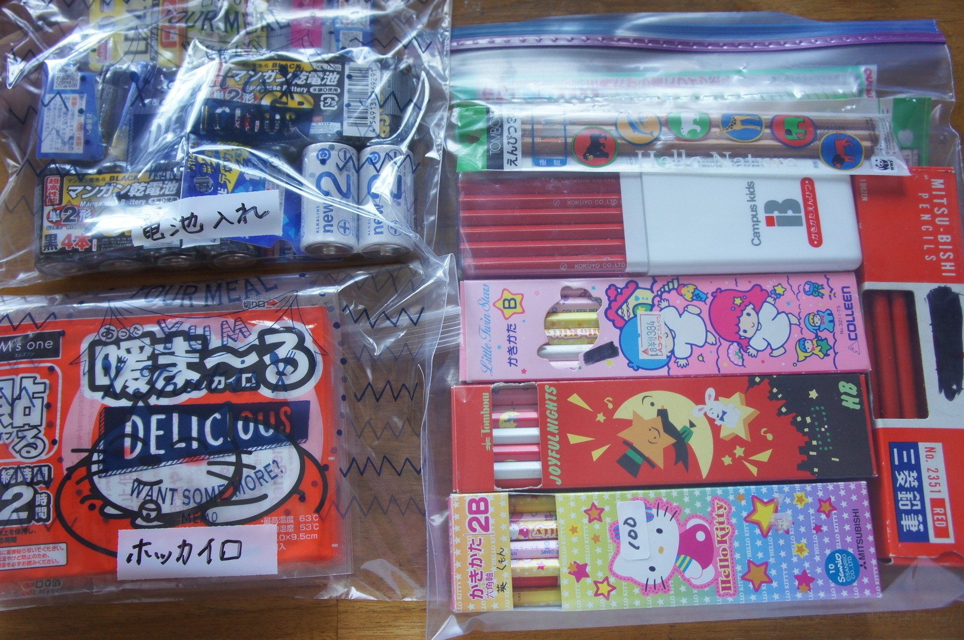電池や充電器など小物類の収納は、ゴチャついてものが迷子になりがち。ユッカさんは、小物類が入っていたカゴの中身をすべて出し、いらないものはゴミ箱へ、いるものは鉛筆や電池、カイロなど種類ごとに分けてジップロックに収納しました。作業を通して、家の中にあるものを把握し、ものを大事に使うことの大切さも再認識できたとのことです。